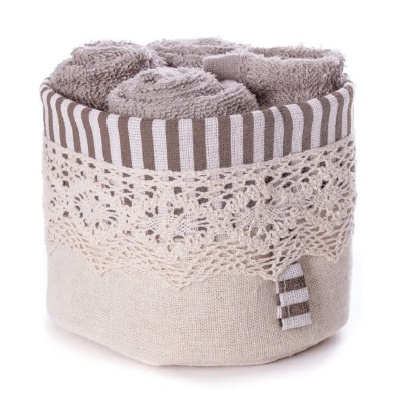 Cestino in tessuto con 4 lavette CHIC in lino e pizzo